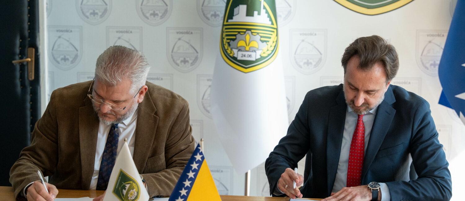 Načelnik Općine Vogošća Migdad Hasanović i direktor KJKP Park Adis Bešlić potpisali su sporazum koji se odnosi na realizaciju projekata uređenja dječijih i sportskih igrališta na području općine Vogošća u 2026. godini.